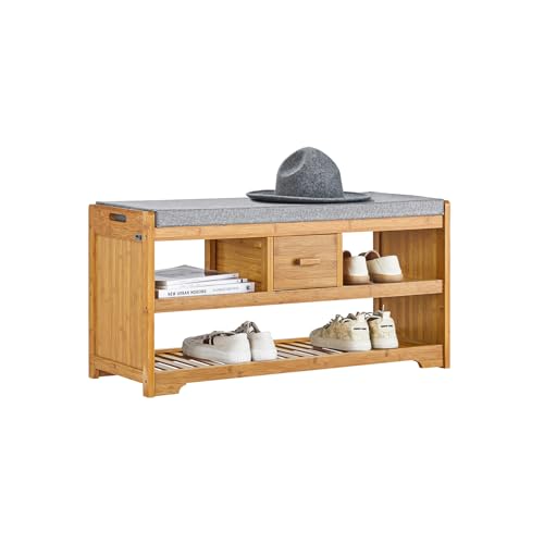 SoBuy® FSR75-N Étagère à Chaussures avec tiroir, Banquette Siège pour chausser, Meuble à Chaussures Banc de Rangement Chaussures en Bambou- L91xP34xH45cm