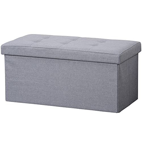 Relaxdays Banc de Rangement, rembourré, Pieds Bois, Banquette, Coffre avec revêtement Tissu HxLxP:39x77x39cm,Gris foncé
