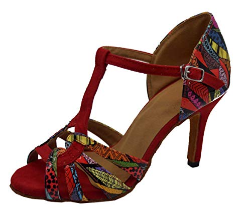 Shutup.Dance Chaussures de danse latine pour femme T-bar Talon personnalisé Semelle souple ou en caoutchouc Ballroom Tango Salsa, Rouge, 36.5 EU