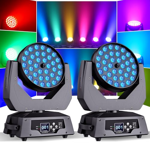 36 x 10W Lyre LED RGBW dmx512 Beam Wash Zoom Effet de Lumière (23-72 degrés) Jeux de Lumiere Soiree DJ Light Pour Noël Mariage Disco Party Bar Dance-2PCS