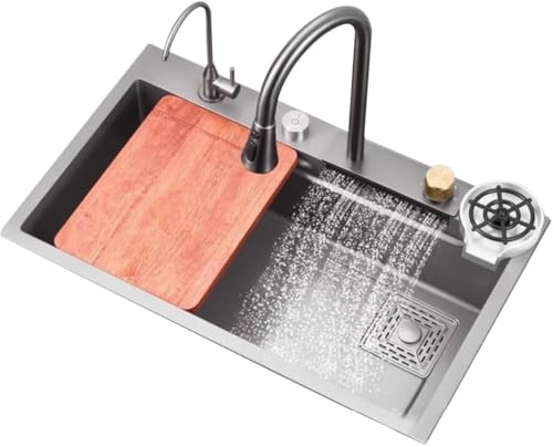 Évier De Cuisine Gris en Acier Inoxydable avec Sortie Cascade, évier Simple, pour La Vaisselle, pour Restaurant, Bar, Salon De Thé, Piscine., Grigio, 80 * 45 * 22cm