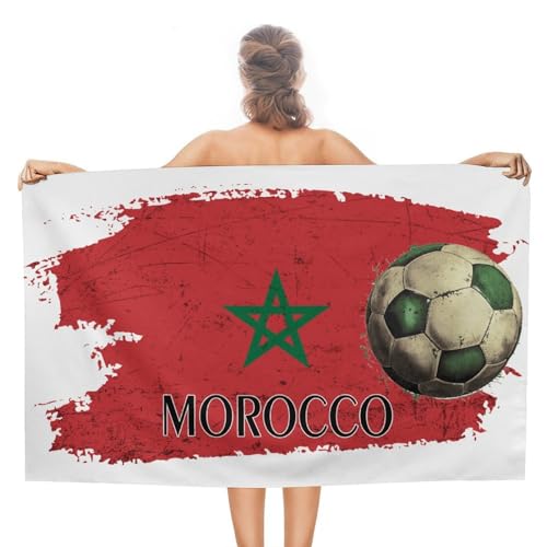 Serviette de plage pour homme, thème football, Maroc, voyage, résistante à la décoloration, douce pré-lavée, serviette de piscine, drapeau, bar, fête, événements, piscine rustique, 78,7 x 139,7 cm
