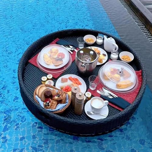 AMULONG Bar Flottant pour Piscine, Spa Plateau Flottant en Rotin pour Table De Bar, Piscine, Flotteurs pour Bancs Sable, Spas, Fêtes Table Flottante