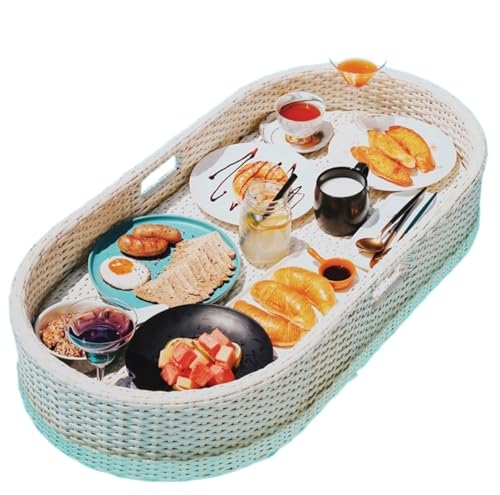 Plateau de service rond flottant pour piscine, plateau flottant de luxe rétro, plateau de service flottant avec poignées, grand plateau de bar de piscine pour petit déjeuner, boissons, collations