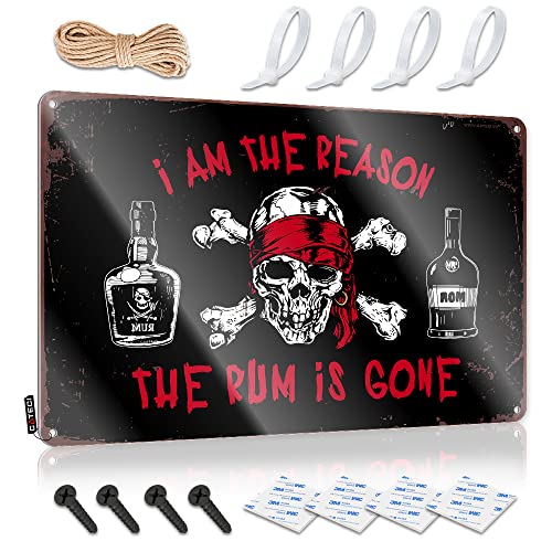 FLEZONITE Plaque vintage humoristique en étain avec inscription « I Am The Reason The Rum Is Gone » pour décoration de bar, de maison, de bar, de piscine (20 x 30 cm)