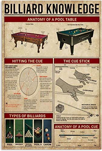Oudrspo Panneau en étain en métal Vintage sur les connaissances du billard, affiches de Guide pédagogique, Club de piscine, Bar, café, salle de décoration murale, Plaque 8x12 pouces