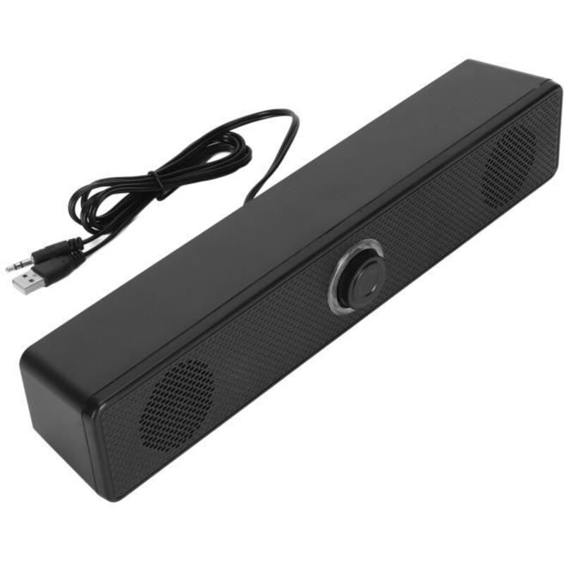 Barre de son USB haut-parleur PC, barre de son stéréo filaire lecteur de musique Bass Surround Soundbox entrée 3,5 mm pour ordinateur de bureau/ordinateur portable/TV/smartphone/tablette/MP3/4 (noir)