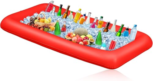 Milisten Lot de 2 Plateaux Glacière Gonflable 60x44x6 Cm, Bar de Service Flottant pour Buffet, Support pour Salades et Boissons, Accessoire Fête Piscine Pratique et Résistant,