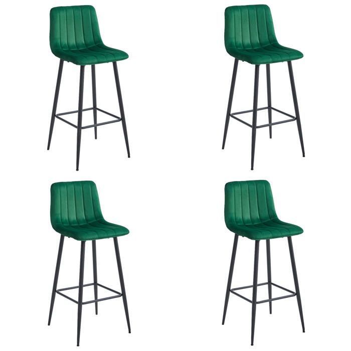 Tabourets de Bar - MADAME MEUBLE - POZZA - Velours Vert - Design Ergonomique - Lot de 4