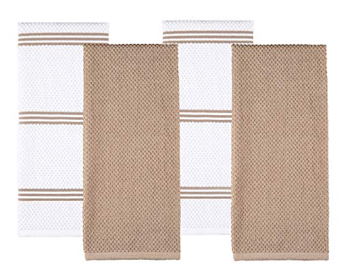 Sticky Toffee - Lot de 4 serviettes de cuisine absorbants 100% coton - 40,6 x 71 cm - Brun clair - Idéal pour bar et cuisine