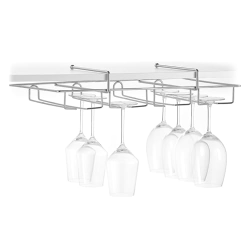 Avilia Porte-verres à vin en métal – Organisez vos verres à pied dans la cuisine – Accessoire pour bar et cuisine facile à fixer – 34,5 x 50 x 9,5 cm – Blanc
