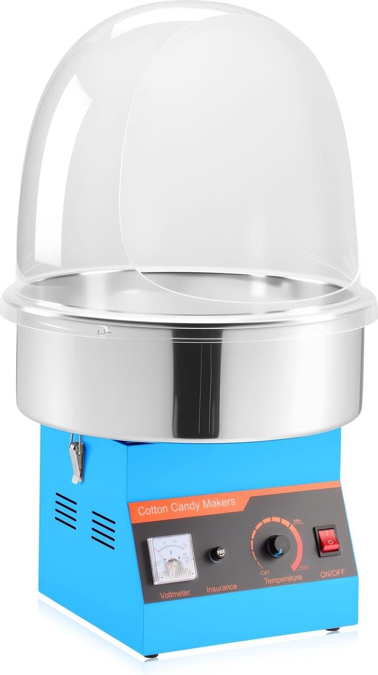 Machine à barbe à papa électrique, machine à barbe à papa commerciale 1000 W avec couvercle, machine à barbe à papa commerciale avec bol en acier inoxydable et cuillère à sucre, idéale pour les carnavals, les anniversaires, les fêtes de famille, bleue