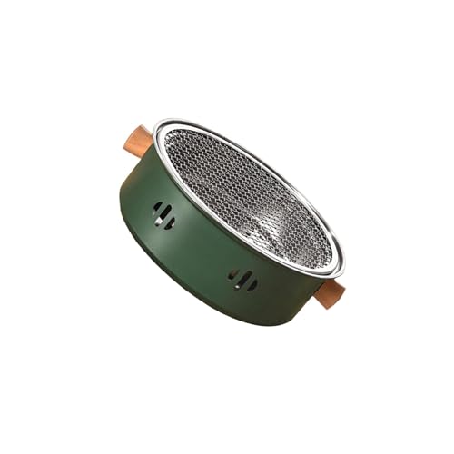 Petit barbecue portable au charbon de bois avec poignée, idéal pour la cuisine en extérieur. Réchaud de table en acier inoxydable pour le camping et les pique niques (1 à 2 personnes). Couleur ve