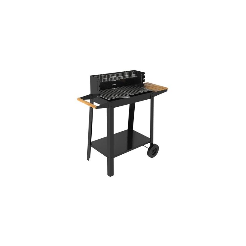 Somagic - Barbecue à charbon de bois avec tablette en bois Noir 93.5x54.5x89 cm