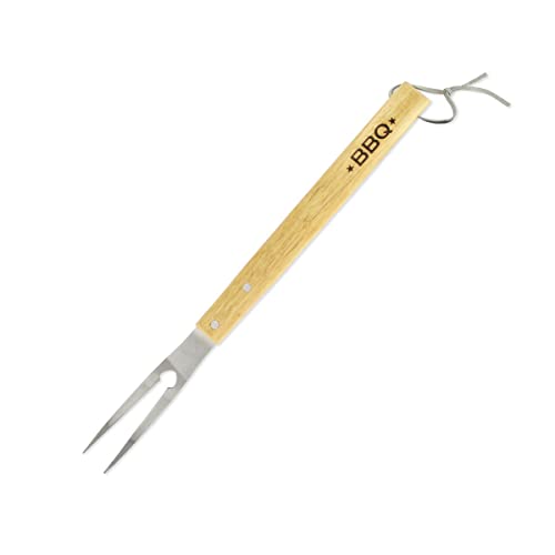 Fackelmann 25191 Fourchette pour barbecue, fourchette géante à barbecue, Bois, Acier inoxydable, Brun, 42 cm