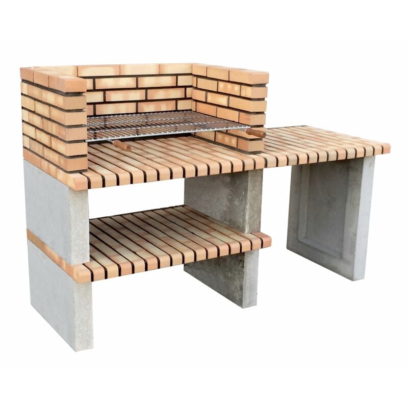 Movelar - Barbecue préfabriqué à bois et charbon en béton réfractaire modèle New Iberia Plus xl avec mini support latéral (Gris, Orange - 128 x 47 x