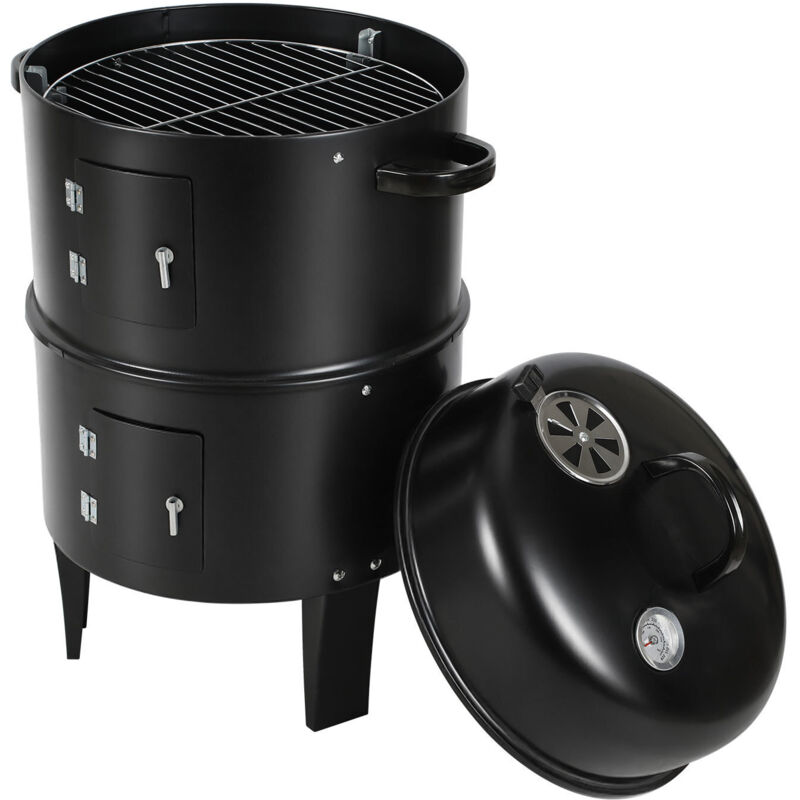 Randaco Fumoir vertical Barbecue à charbon de bois BBQ Multifonctions BBQ Grill à Charbon 3 chambres Acier 40 x 80 cm