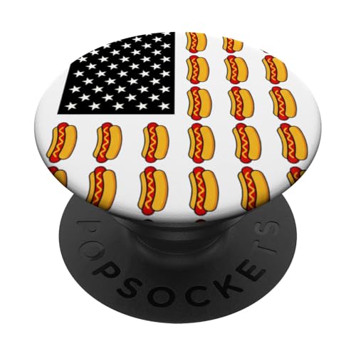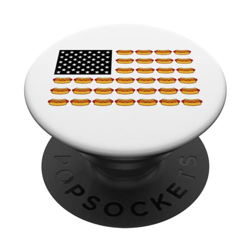 Hot Dog Drapeau américain 4 Juillet Patriotique été Barbecue drôle PopSockets PopGrip Adhésif
