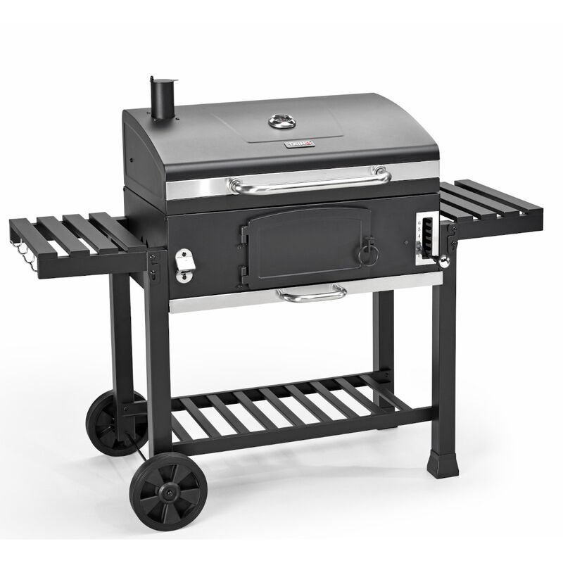Taino – Fumoir barbecue au charbon de bois 142x46x111 cm – Grille fonte 42x72 cm – Cuve réglable 6 niveaux – Thermomètre intégré – Tables rabattables
