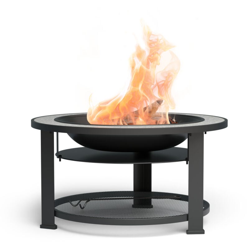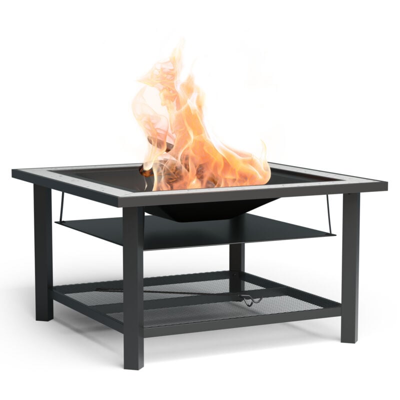 Braséro foyer extérieur 3en1 pour jardin - barbecue au charbon de bois, électrique, plancha, table, gril, grille de cuisson, tisonnier,