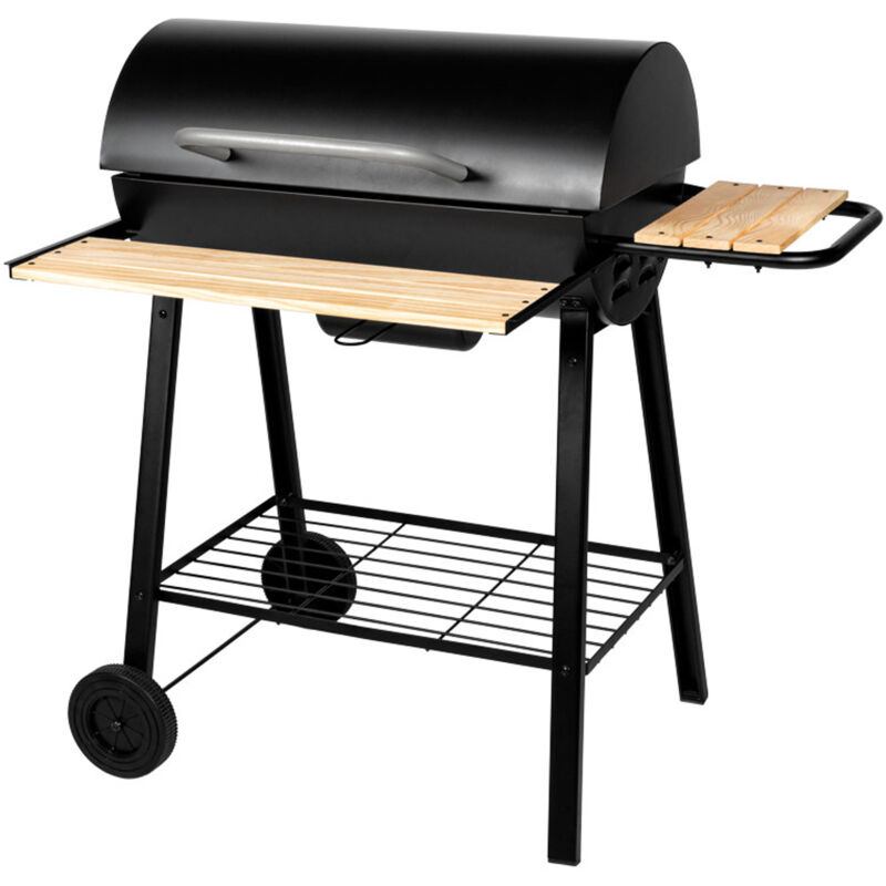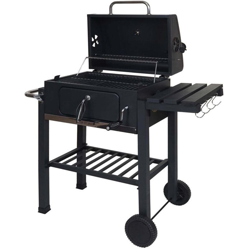 HHG - Chariot de barbecue 862, barbecue au charbon de bois Barbecue bbq gril de jardin avec couvercle étagères, acier, 110x100x51cm noir