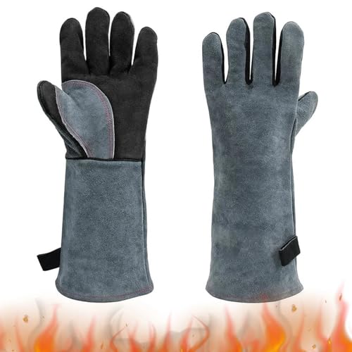Opatiny Gants de soudage extensibles de 40 cm pour soudage électrique MIG TIG, cuir de vache avec isolation triple couche, compatibles avec barbecue four cheminée travail