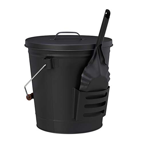 Relaxdays Seau à Cendres, avec Couvercle et Pelle, Acier, bac à Charbon avec Anse, 19 l, cheminée & Barbecue, Noir