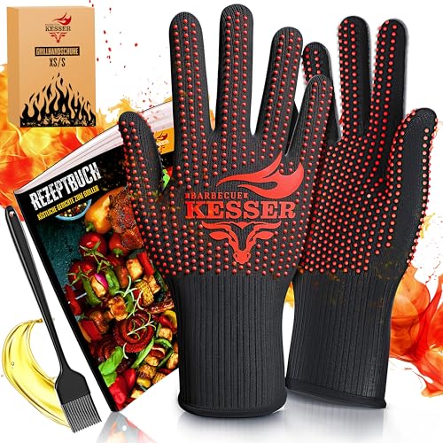KESSER® Gants de Barbecue résistants à la Chaleur jusqu'à 500 °C, Taille XXL, Gants de Four, Respirants et avec poignée antidérapante, Gants de Cuisine, en Tissu aramide, Gants de cheminée, lavables