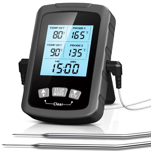 CIRYCASE Thermomètre Cuisine avec Sondes Doubles 16.3cm, Minuteur et Température Préréglée Thermometre Cuisson Numérique Lecture Instantané avec Écran LCD & Auto-Arrêt pour Barbecue/Fumoir/Grill/Meat
