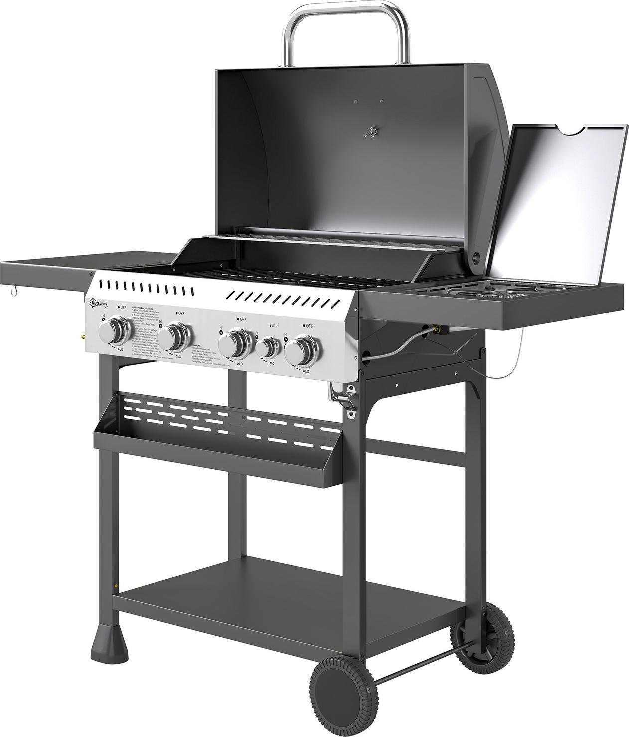 Gril à gaz 12 KW 4+1 brûleurs Chariot de barbecue en acier inoxydable avec brûleur latéral thermomètre grille de cuisson ouvre-bouteille étagères latérales gril à gaz pour balcon camping 135 x 55 x 103 cm |