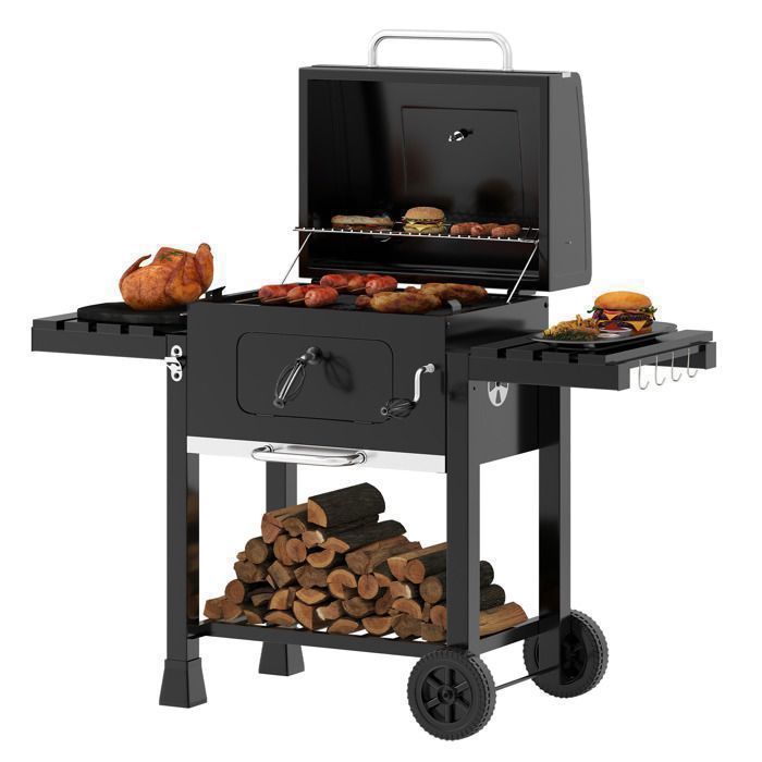 BigBuy Outdoor Barbecue à Charbon avec Roues Grill Noir Ø 51 cm