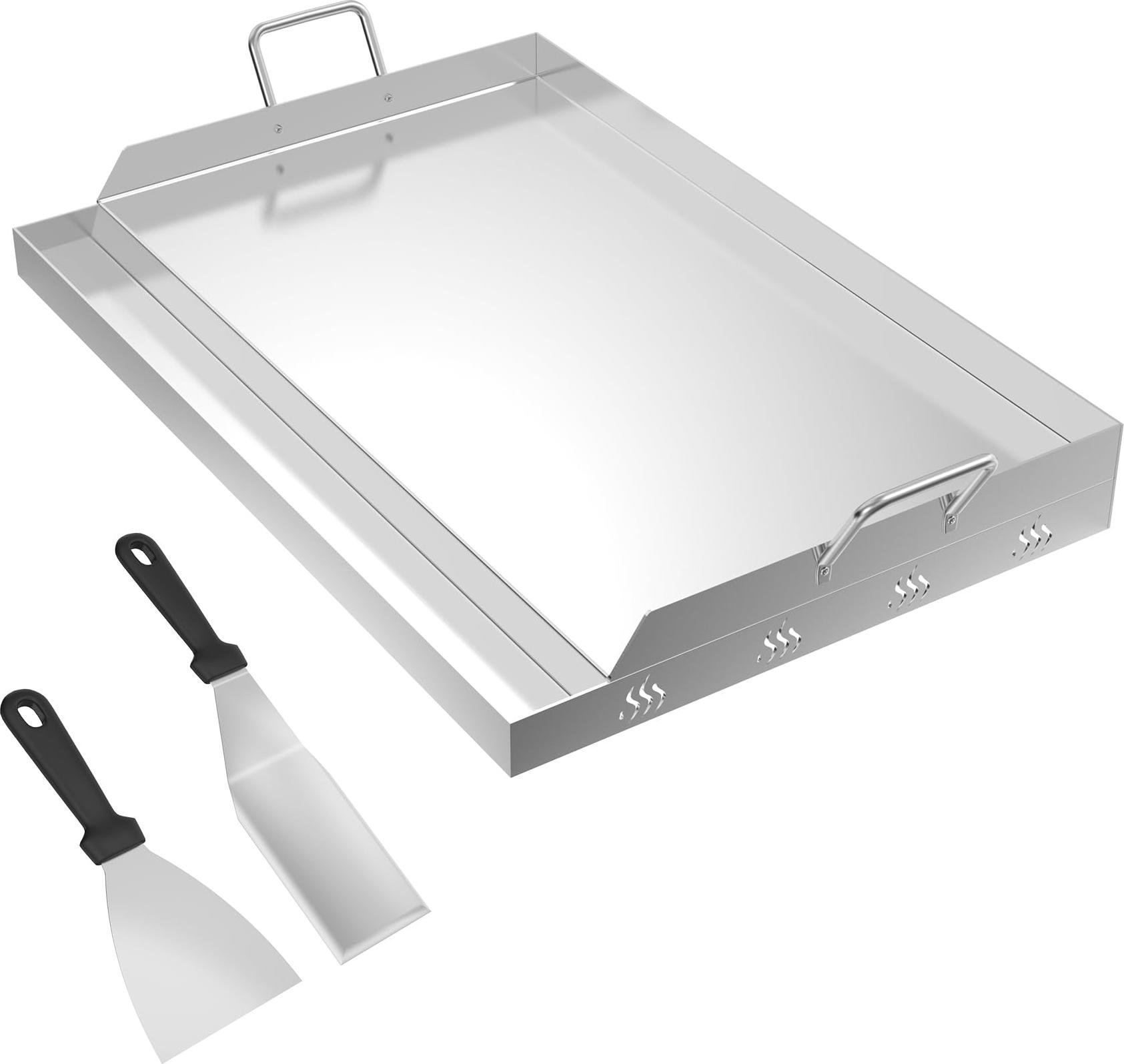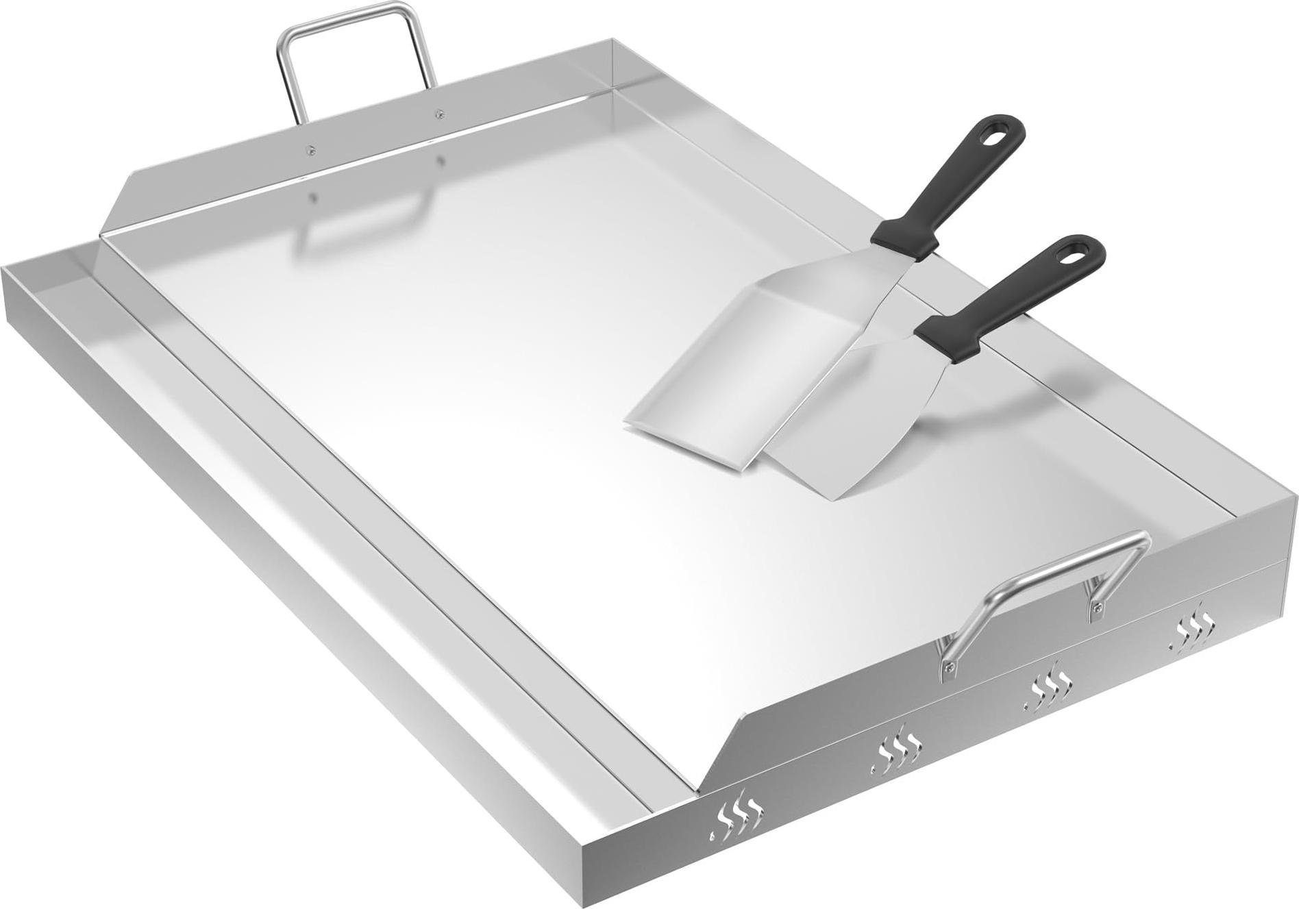 Onlyfire Plaque de Cuisson en Acier Inoxydable, Universelle BBQ Plancha avec Poignée, 63,7x40,5cm, Plaque de Barbecue pour Barbecue à Gaz et Charbon de Bois, Rectangulaire