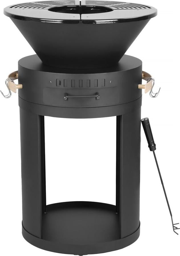 Barbecue plancha brasero a charbon et bois Cesar - 49 x 49 x 92 cm - Noir