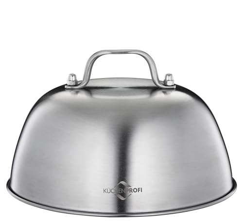 Küchenprofi Cloche de Barbecue en Acier Inoxydable avec poignée, pour Fondre, Cuire et Garder au Chaud, Accessoire de Barbecue Robuste, Passe au Lave-Vaisselle, Hauteur sans poignée 7 cm, diamètre 16