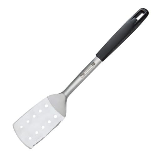 FMprofessional 22300 Spatule pour Barbecue en Acier Inoxydable avec Lame ondulée Noir/argenté