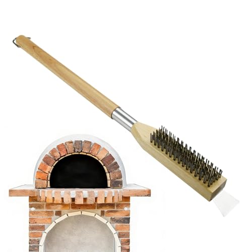 Brosse de four à pizza – Grattoir de nettoyage à long manche – Brosse à pierre à pizza avec poignée en bois, pour cheminée, poêle, barbecue, camping, cuisine, restaurant, cuisine, jardin extérieur