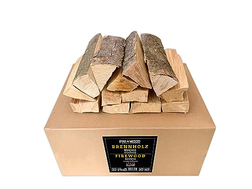 PINI, Bûches de bois de hêtre, sans écorce, 7 kg, bois de fumage pour barbecue, fumoir, four à pizza