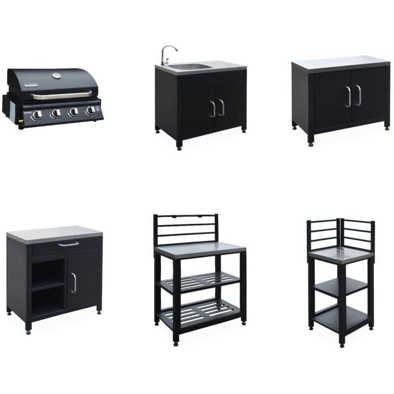 Cuisine extérieure Naxos 3 modules acier inoxydable noir avec barbecue gaz 3 brûleurs