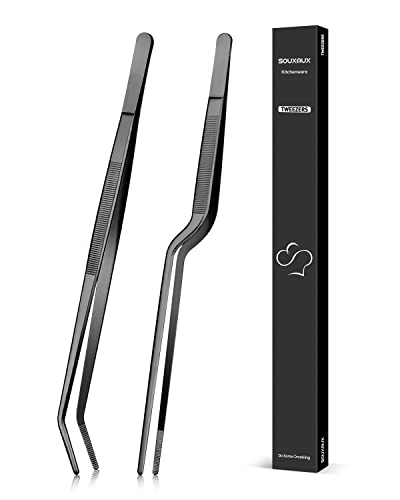 Ensemble de pinces à épiler et de pinces à épiler courbes de 30 cm, embouts dentelés de précision, outils de cuisine professionnels en acier inoxydable pour le barbecue, le placage et le service.