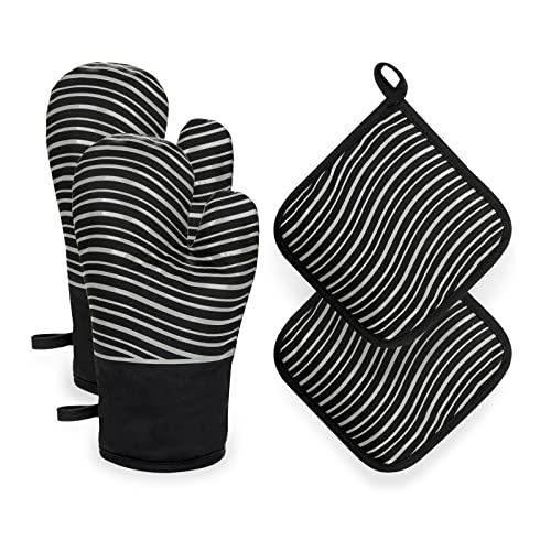 Allinside Gants de Four et 2 Supports de casseroles, Gants de Four résistants à la Chaleur, Gants de Cuisine avec Bande antidérapante en Silicone, pour la Cuisine, la Cuisson, Le Barbecue