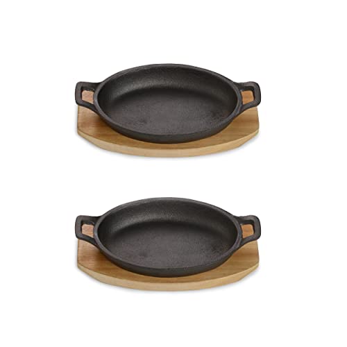 ECHTWERK Poêle de service en fonte, mini poêle à frire avec planche de service, déjà saisie, convient pour le four, le barbecue et l'induction, idéale pour le service, 2 pcs.