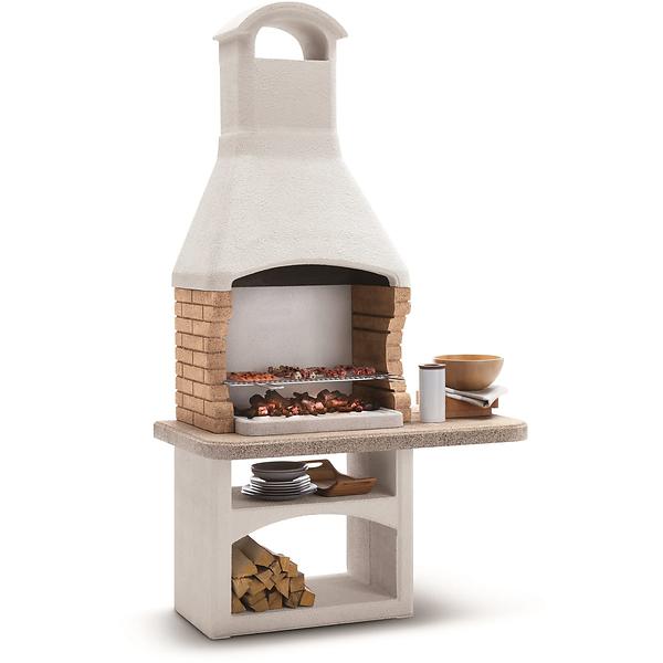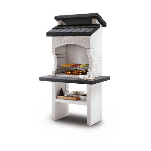 Barbecue fixe charbon - En pierre blanche - 68x40cm - OLBIA