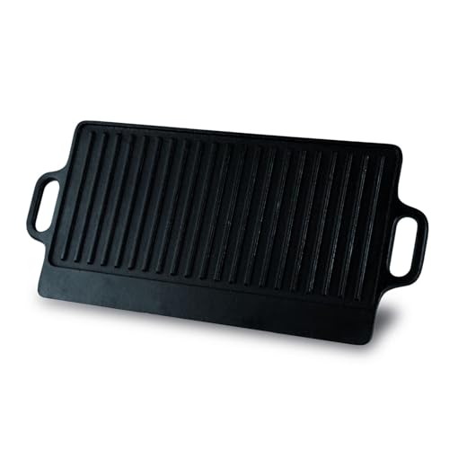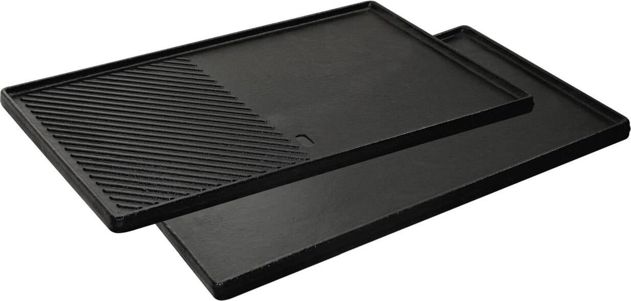 Baumalu, Plancha 42 cm en Fonte Utilisable des Deux Côtés, Noir, Idéale pour Gaz et Four, Dimensions 50,5 x 2 x 23 cm, Contenu du Packaging: 3, Parfaite pour Barbecue et Cuisine
