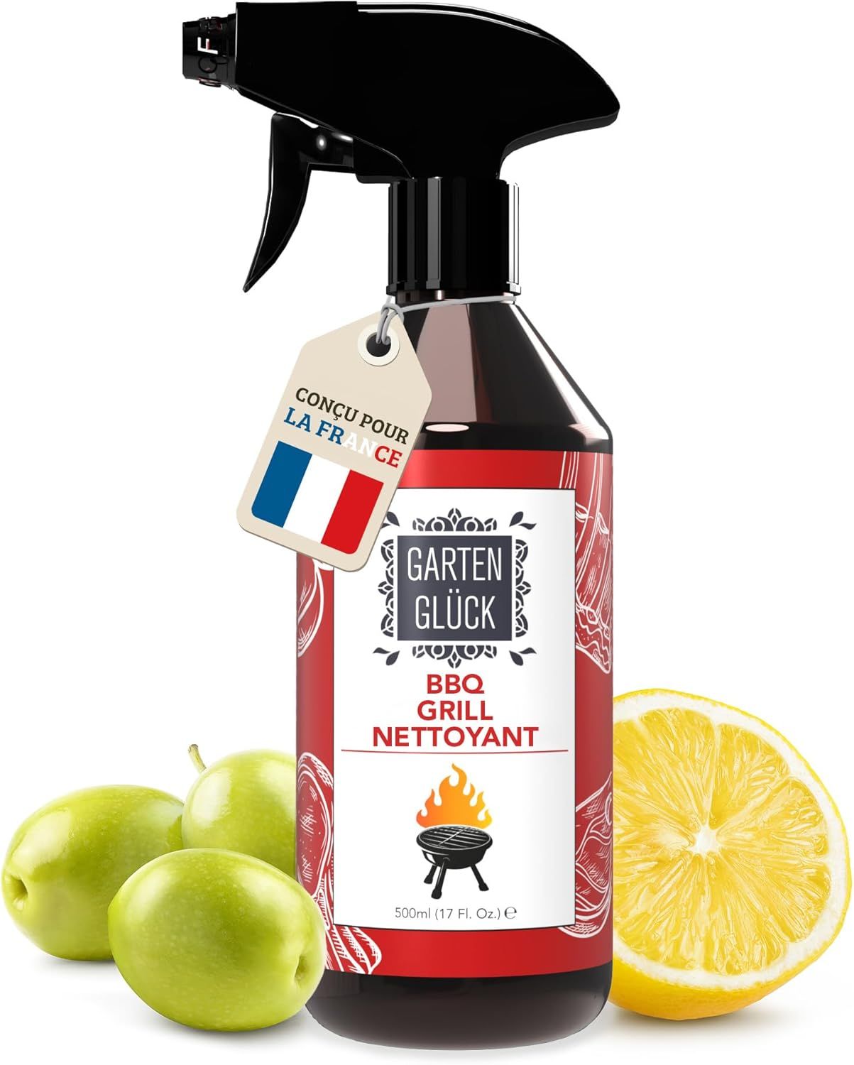 Nettoyant Barbecue Gaz & Plancha -0,5L- 100% Naturel aux Huiles Essentielles - Parfum Citronné Frais - Compatible avec Brosses, Accessoires & Outils - Fabriqué en Allemagne