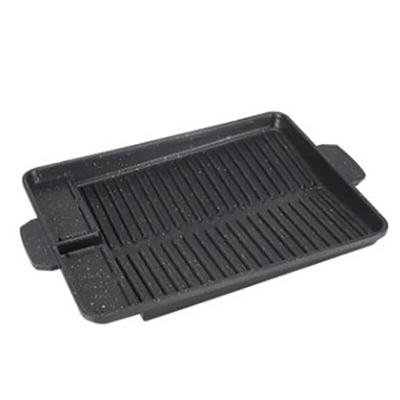 Plaque de barbecue au charbon de bois antiadhésive,poêle de barbecue Portable,poêle à gaz Butane,plateau de barbecue coréen rectangulaire,ustensiles de cuisine d'extérieur - Type Black