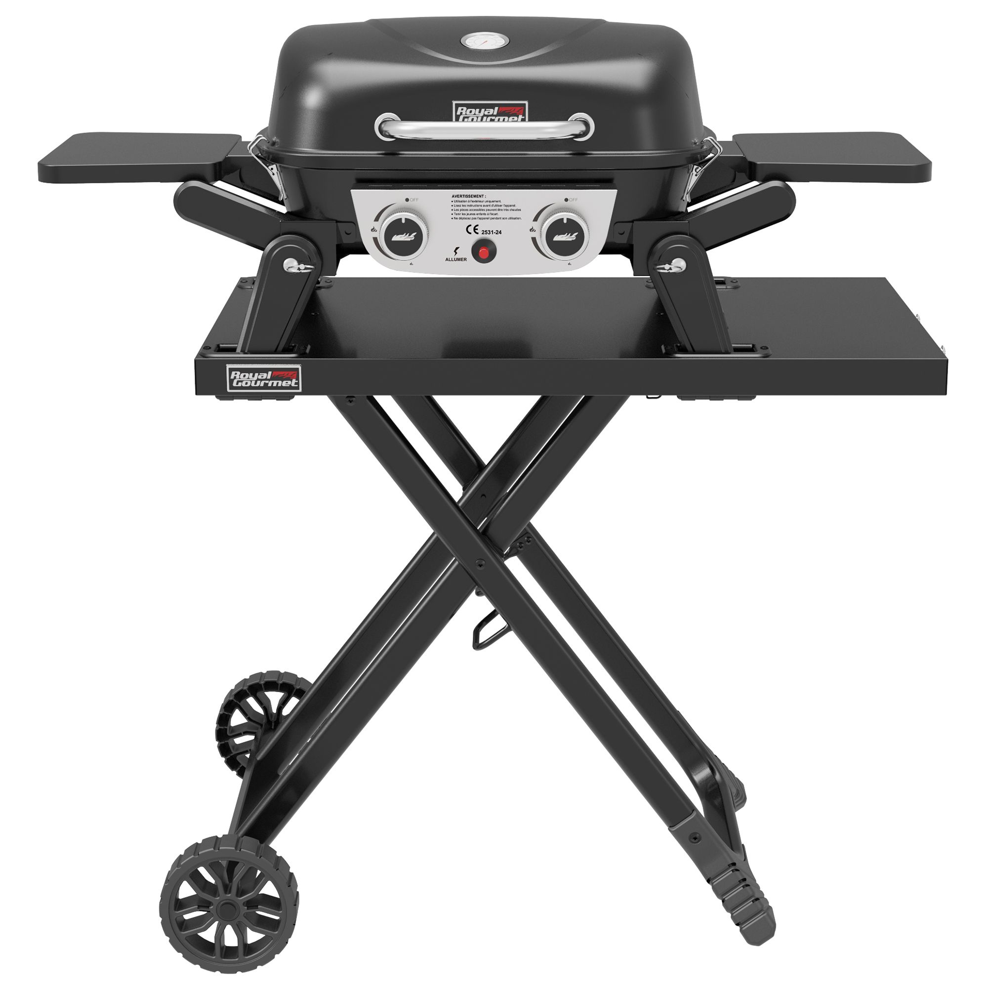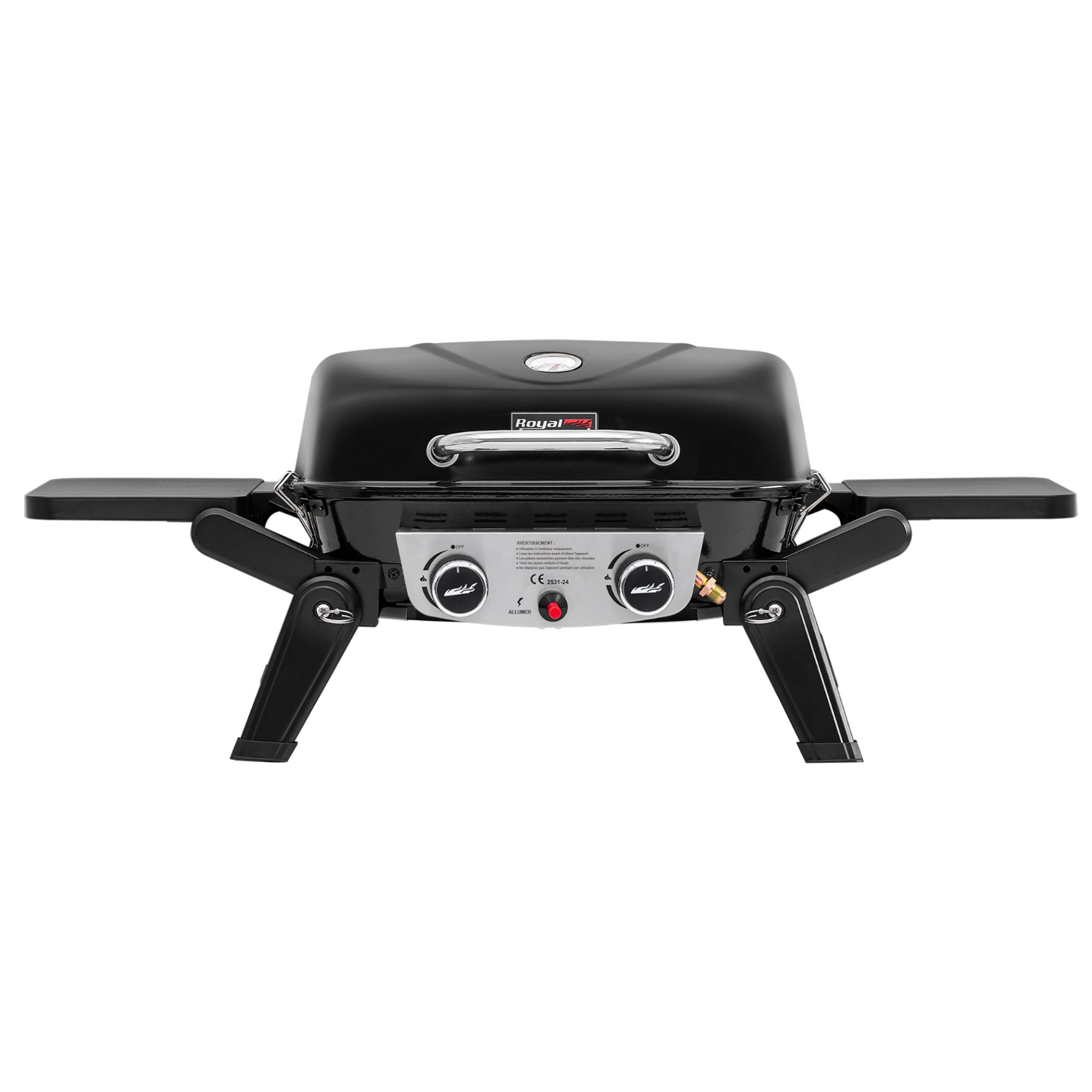 Barbecue Gaz Portable - Royal Gourmet - 2 Brûleurs Puissance 5 kW Surface Cuisson 48 x 37 cm - avec Tables Latérales