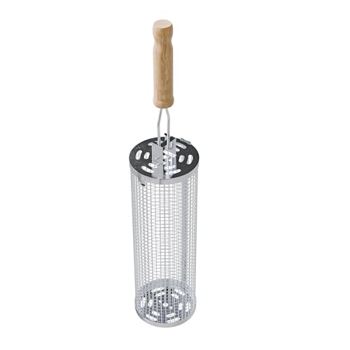 Amig - Panier Rond pour Barbecue - 8 x 20 cm - Poignée en Bois - Grille en Acier Inoxydable - Panier Rotatif pour Barbecues dans Le Jardin ou Le Camping - Support Stable - Mod. AM28
