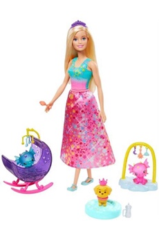 Barbie Poupée arc-en-ciel et ensemble de jeu licorne GTG01