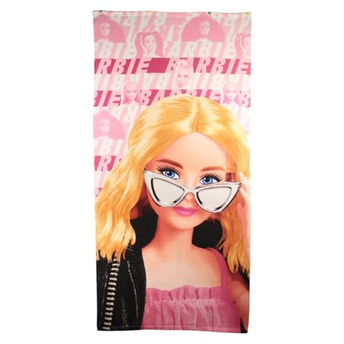 Character World Barbie Serviette Officielle | Toucher Super Doux, Design Frais | Parfait pour la Maison, Le Bain, la Plage et la Piscine | 100% Coton, Taille Unique 140 cm x 70 cm, Rose