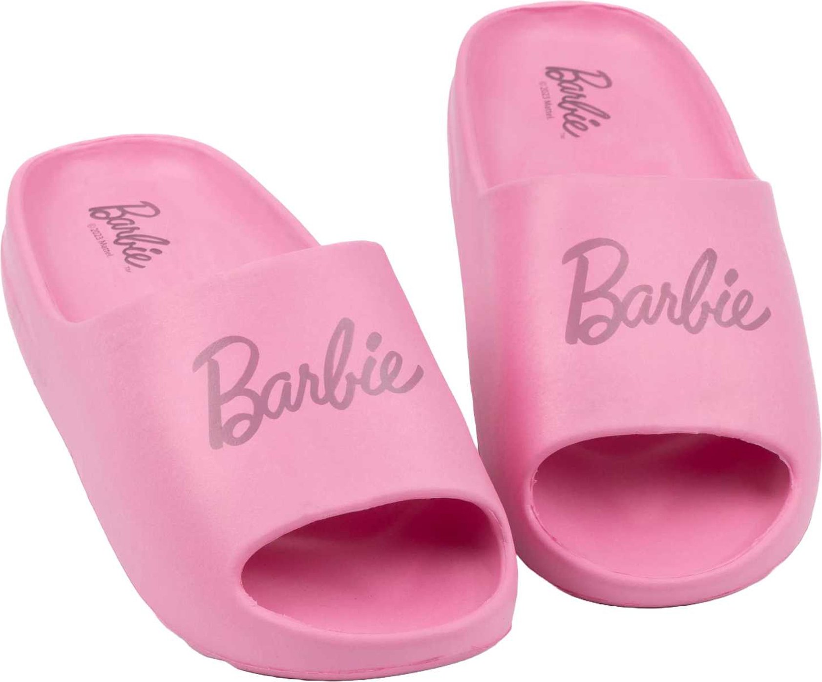 Barbie Sliders Femme | Sandales avec logo de poupée emblématique rose pour dames | Beachwear Maillot de bain Chaussures d’été Chaussures